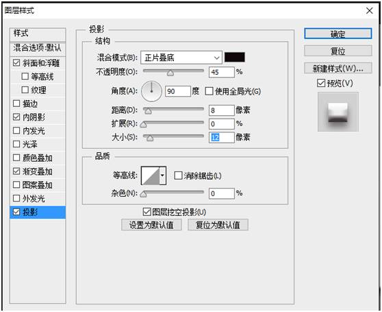 做完这一步之后,我们要对此图层设置图层样式哦,参数仅供参考!
