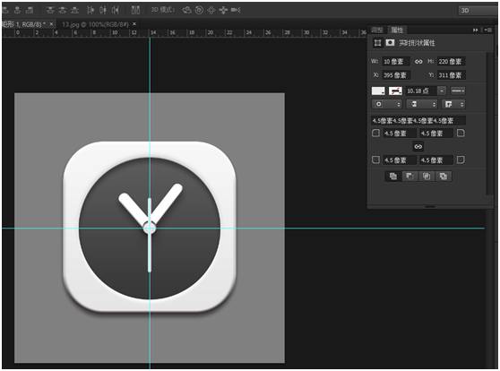 拉出辅助线,放到圆心的位置,摆放好位置,并设置指针1的图层样式。
