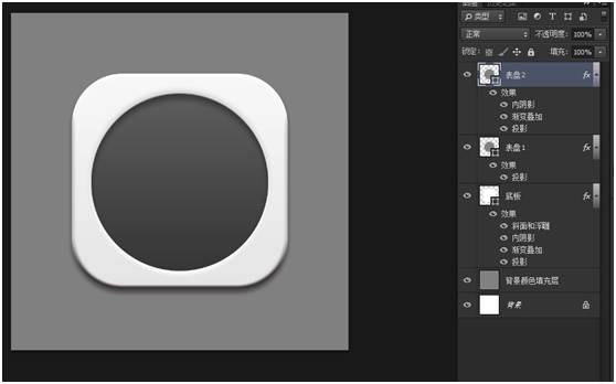 第三步,底板做好了之后,我们开始要表盘里面的凹下去的效果,我们这一块分为两大块做,选中椭圆工具,按住Shift键,新建一个420px X 420px的正圆,命名为表盘1,并添加相应的图层样式。