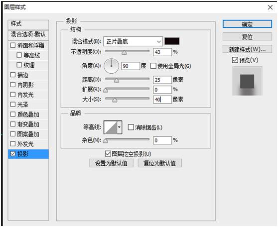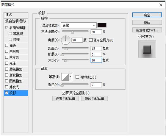 第五步,新建一个40px X 40px的正圆,居中对齐,颜色根据自己喜欢添加,命名为圆盘中心,并添加图层样式。