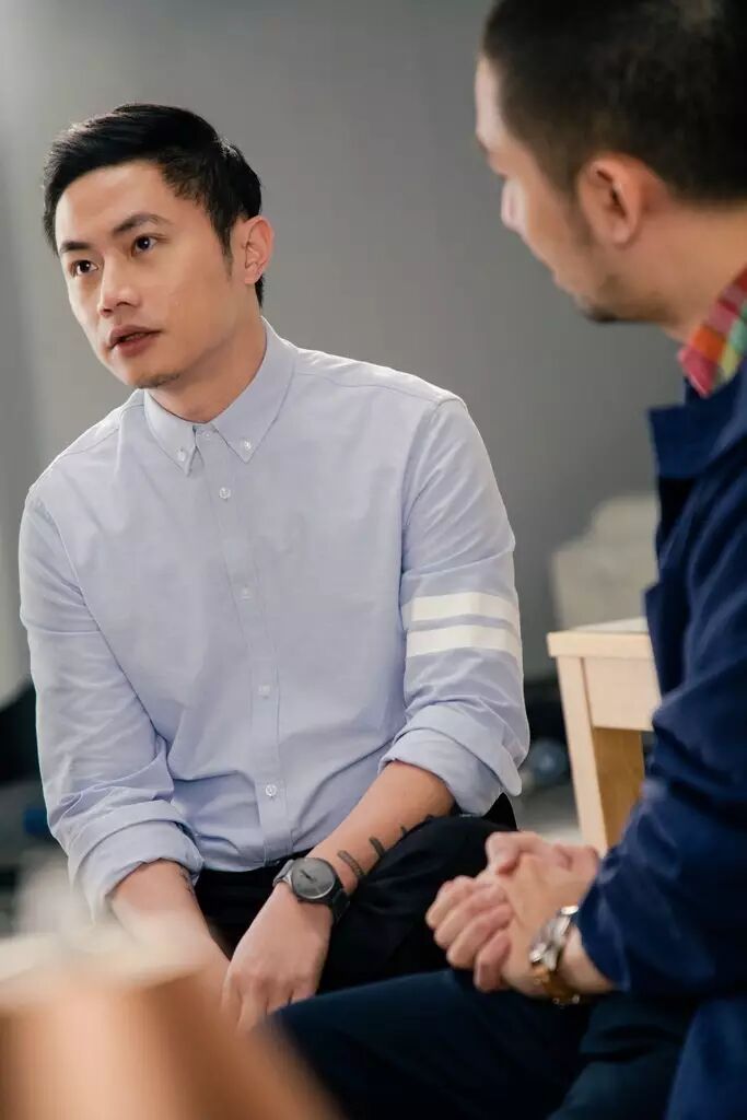 Eric:今天Aaron 刚好是穿我最喜欢的颜色,衬衫跟我一样是平常最喜欢选择的蓝色系,因为个人喜欢颜色重一点,可是又不喜欢穿得太黑,黑色有时给人一种不好亲近的感觉;但蓝色系,特别是海军蓝,可以满足穿深色又不致于太黯淡没有活力的感觉。蓝色是我最喜欢的颜色,尤其海军蓝或是像你身上这种牛津衬衫的蓝,打开我的衣柜大概 80% 都是这种颜色。