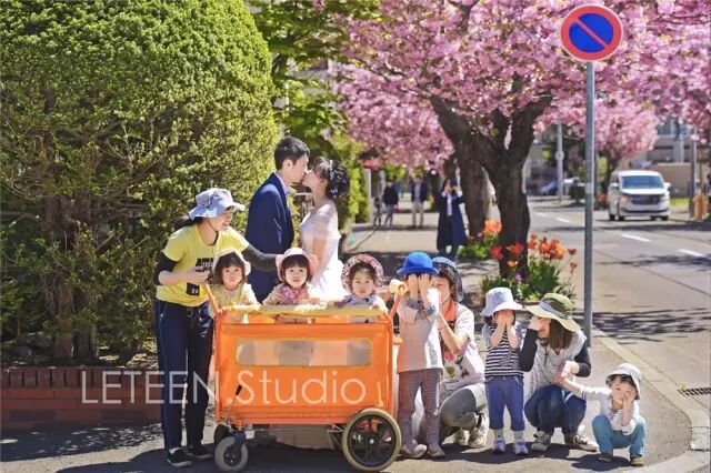 曾经在跟拍新人的途中在街头偶遇一群小朋友,于是就邀请他们加入拍摄,拍了一张大合照。我喜欢生活中那种不经意的火花碰撞,既真切可贵又惊喜无比!