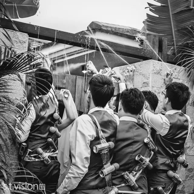 现在的婚礼变的有点形式化了,所以在婚礼拍摄之前,我们都会主动要求与新人见面,了解对方的一些需求与人物性格,在拍摄当天让新人更佳投入与享受婚礼,对摄影师没有陌生感,新人才能更好的表现出真实的情感。拍摄当天以抓拍与引导为主,引导新人在最佳的环境中流露真情。我会对新人说,好好玩吧,今天你想怎么嗨都行。