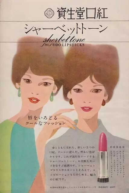 这里日本的的图形设计迎来了黎明时期,前驱之一的山名文夫(1897~1980)为资生堂设计了一直沿用的花椿图标,各种独特线条以及女性画的广告设计。其人可以说是日本广告设计的一个元祖人物,其一生为日本的广告设计做出了不可磨灭的贡献。