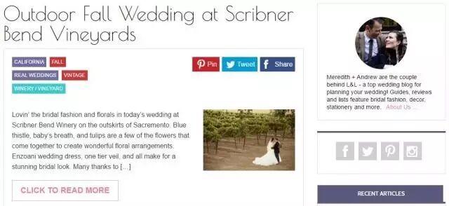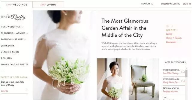 改版后的Style me pretty 功能性更强,最新婚礼资讯、真实婚礼筹划经验分享、婚纱潮流趋势等一应俱全,总之你想要的它都有。