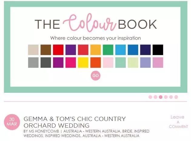 如果你想策划独特又有个性的完美婚礼,The Perfect Palette准没错。它是一家权威婚礼色彩策划博客,在博客首页的导航栏里就可以找到色卡,引擎会根据你的选择向你推荐相关主题的婚礼方案,很贴心有木有!