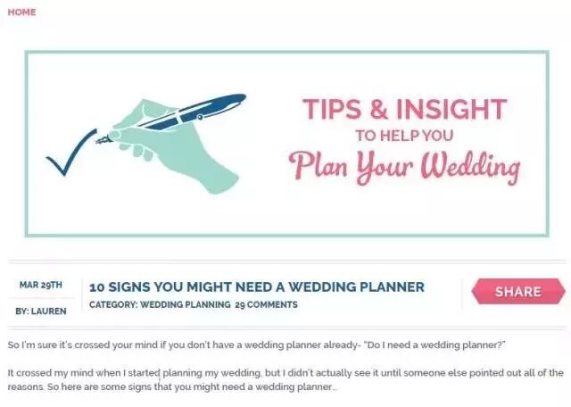 博客上有很多实用攻略,如果你没有时间策划婚礼的话,可以按博客上的推荐步骤来准备。