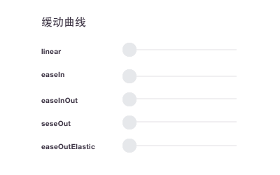 3.easeInOut(头尾缓、中间快)通常在轮转切换的动画中使用(One Out One In),这类动画的触发对象与运动对象并不是同一个元素。