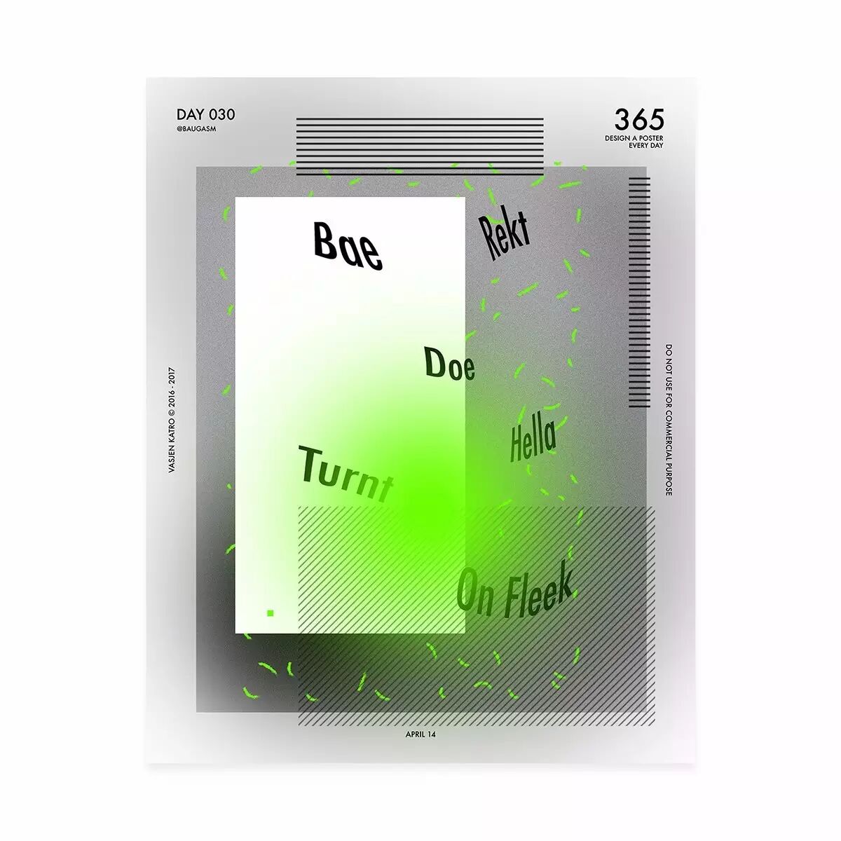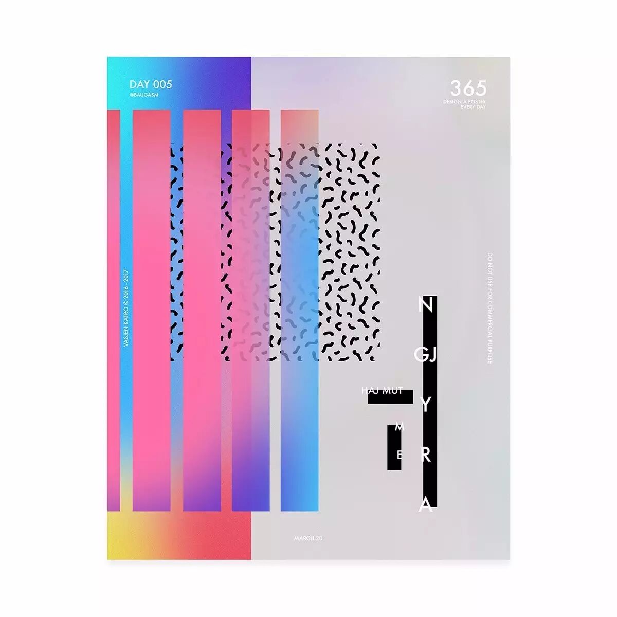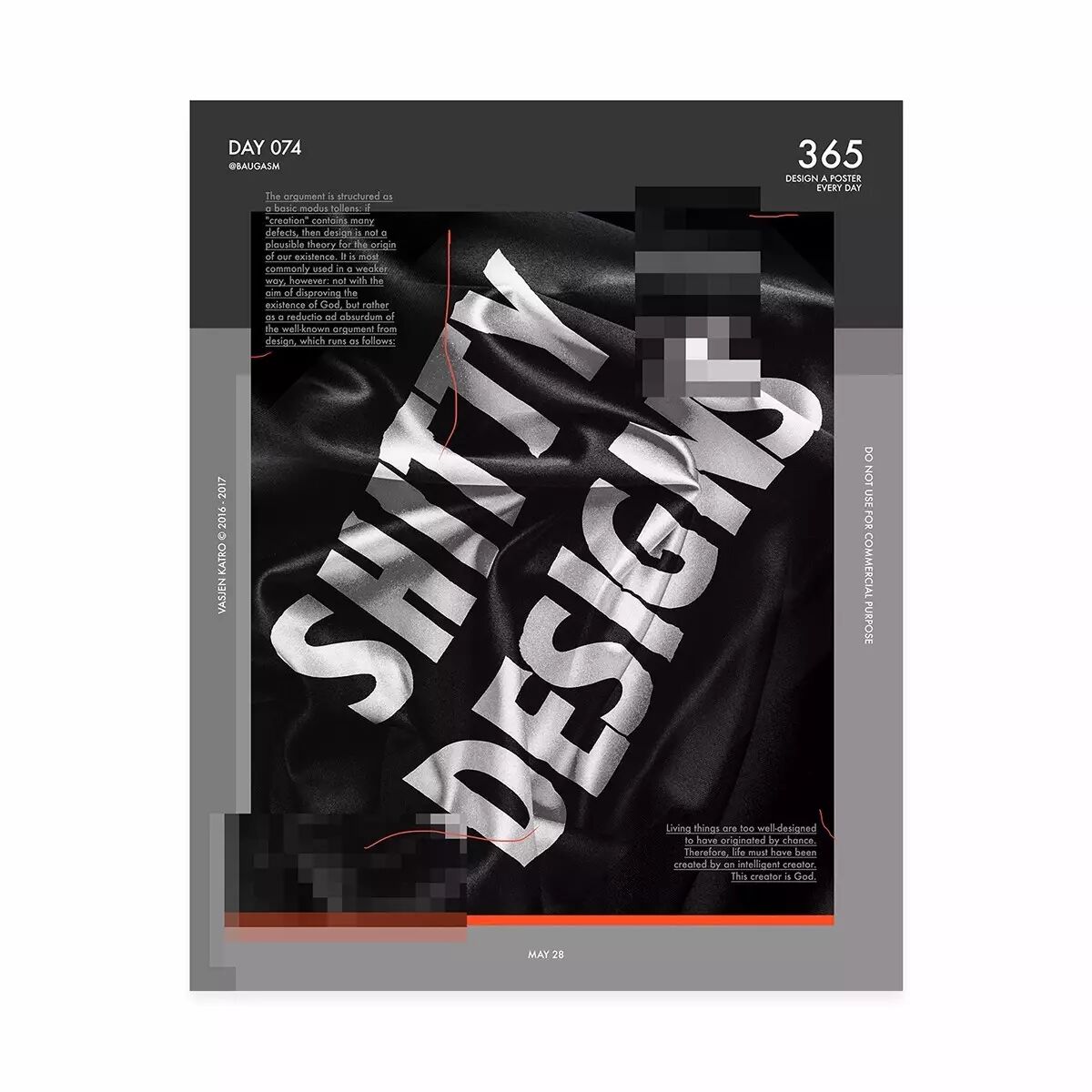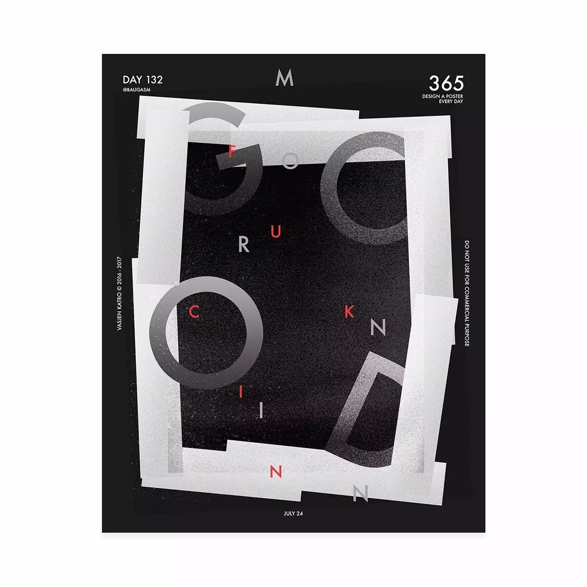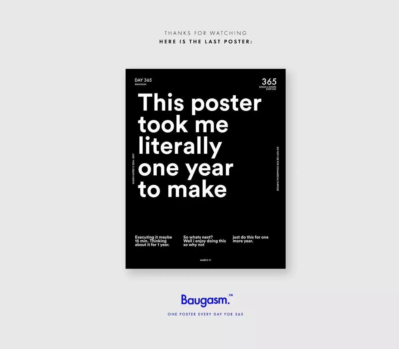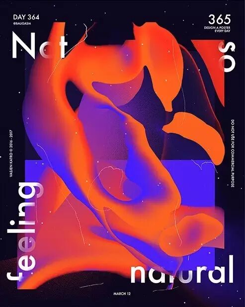 而他最为人知的就是去年开始他给自己制定的一个目标,他为了挑战自己,决定每天创作一个海报,坚持一年时间,也就是365天,365张海报!