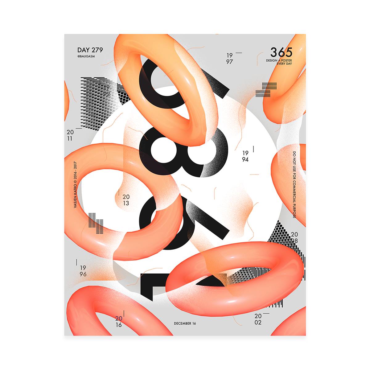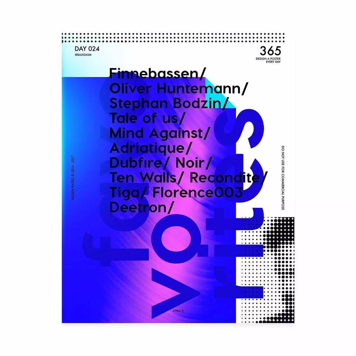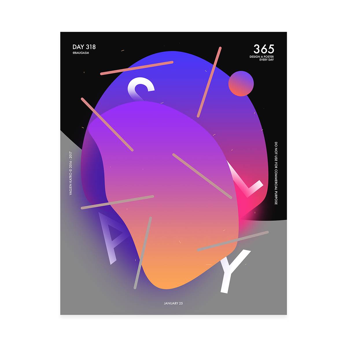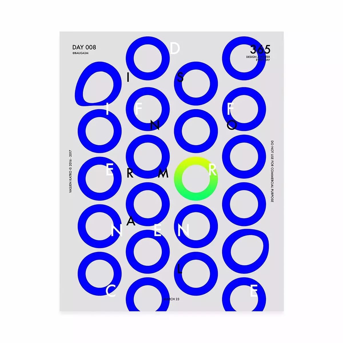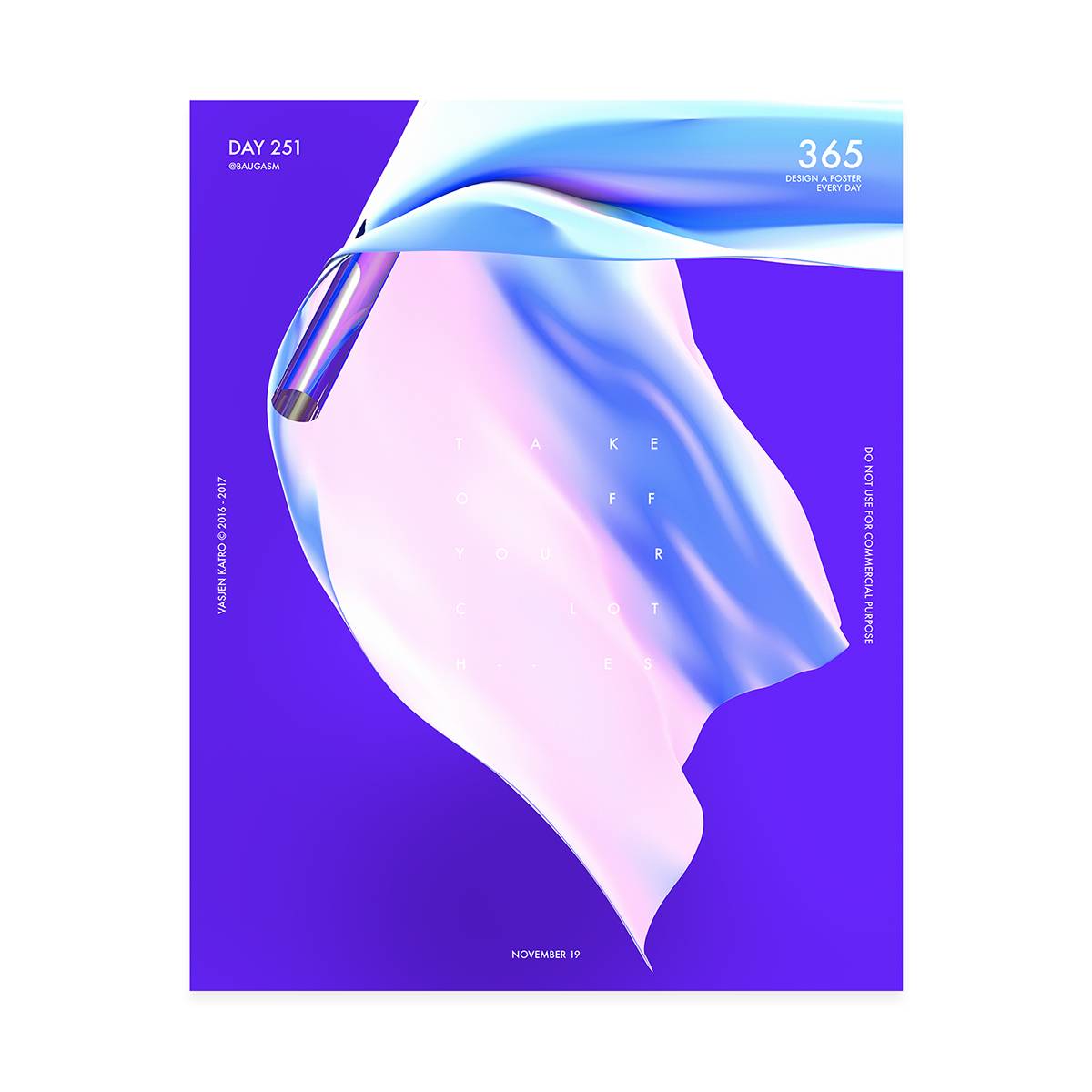 而他最为人知的就是去年开始他给自己制定的一个目标,他为了挑战自己,决定每天创作一个海报,坚持一年时间,也就是365天,365张海报!