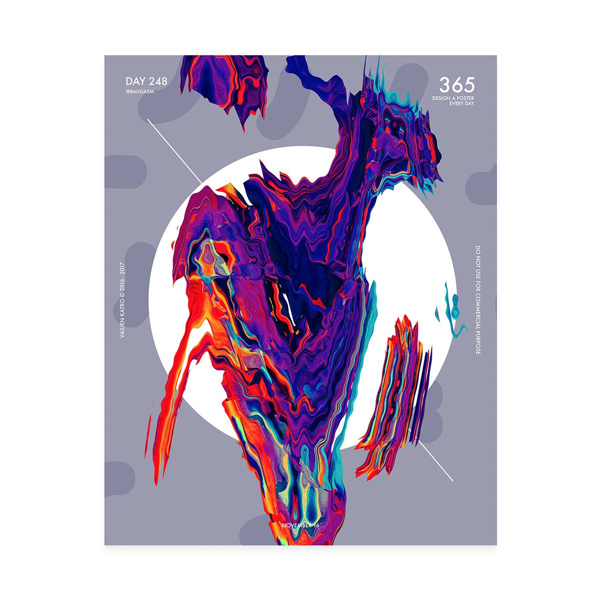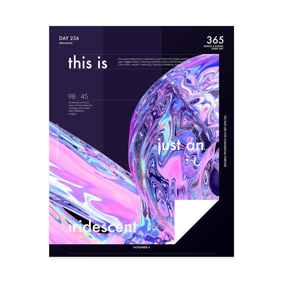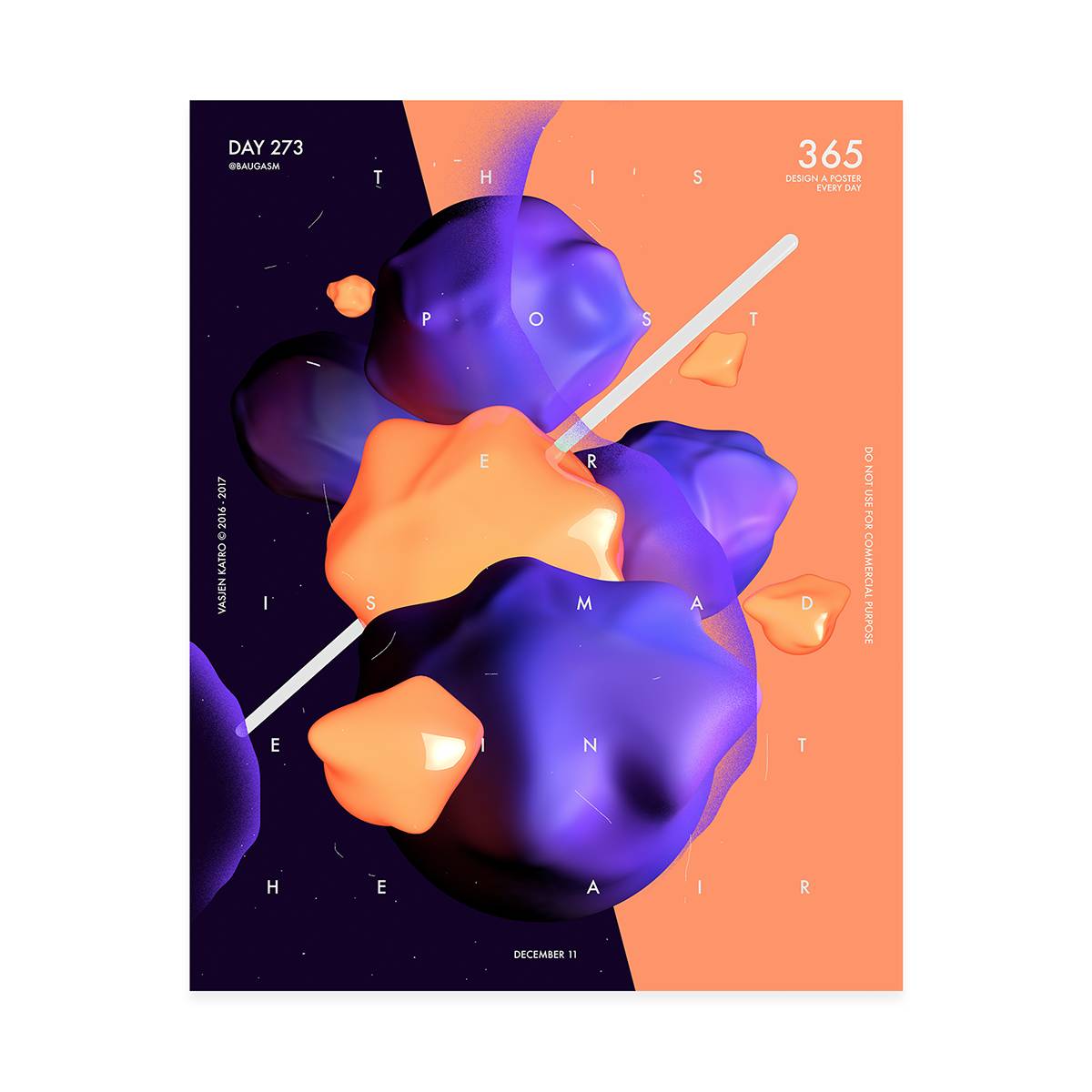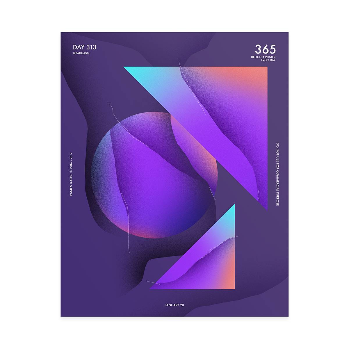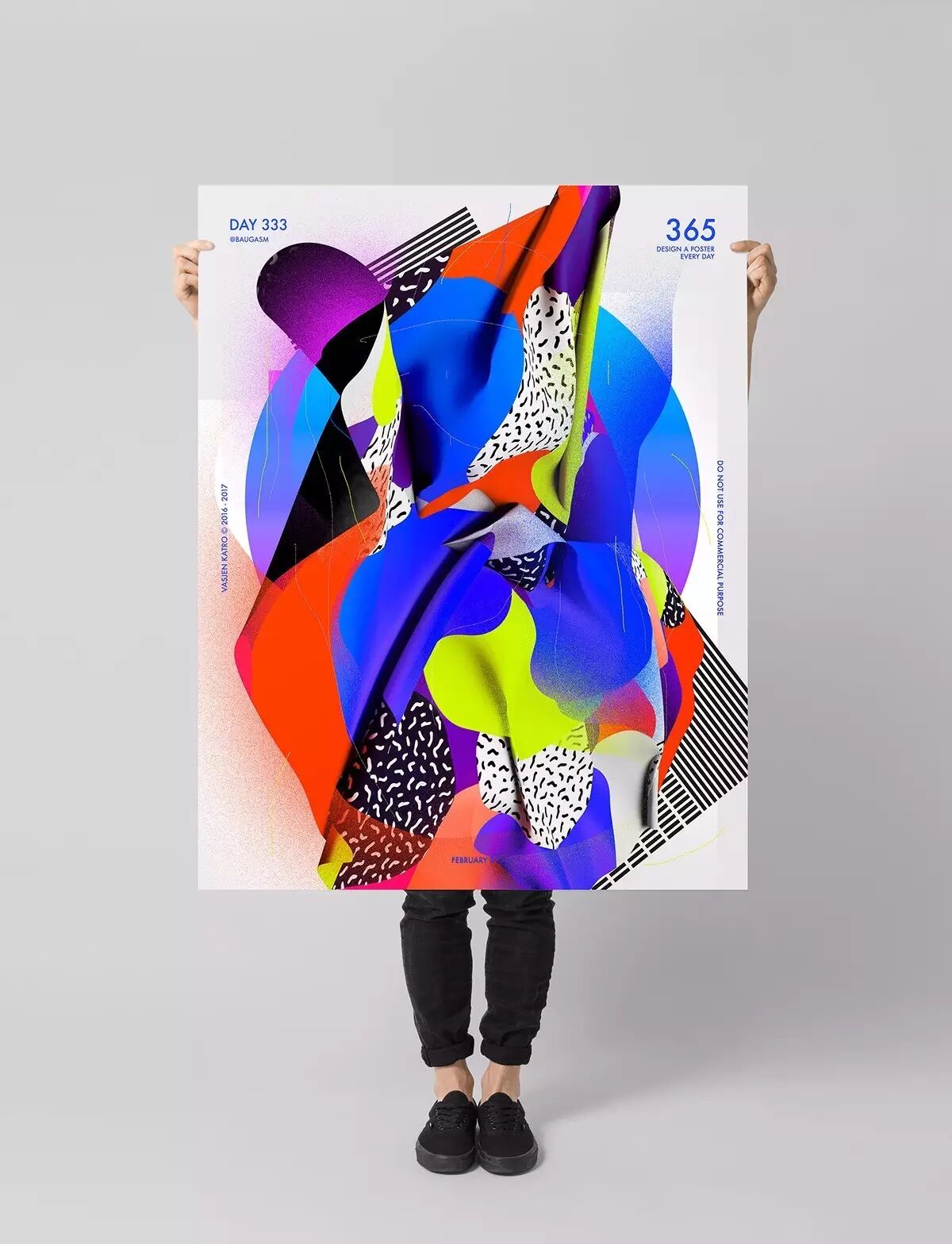 而他最为人知的就是去年开始他给自己制定的一个目标,他为了挑战自己,决定每天创作一个海报,坚持一年时间,也就是365天,365张海报!