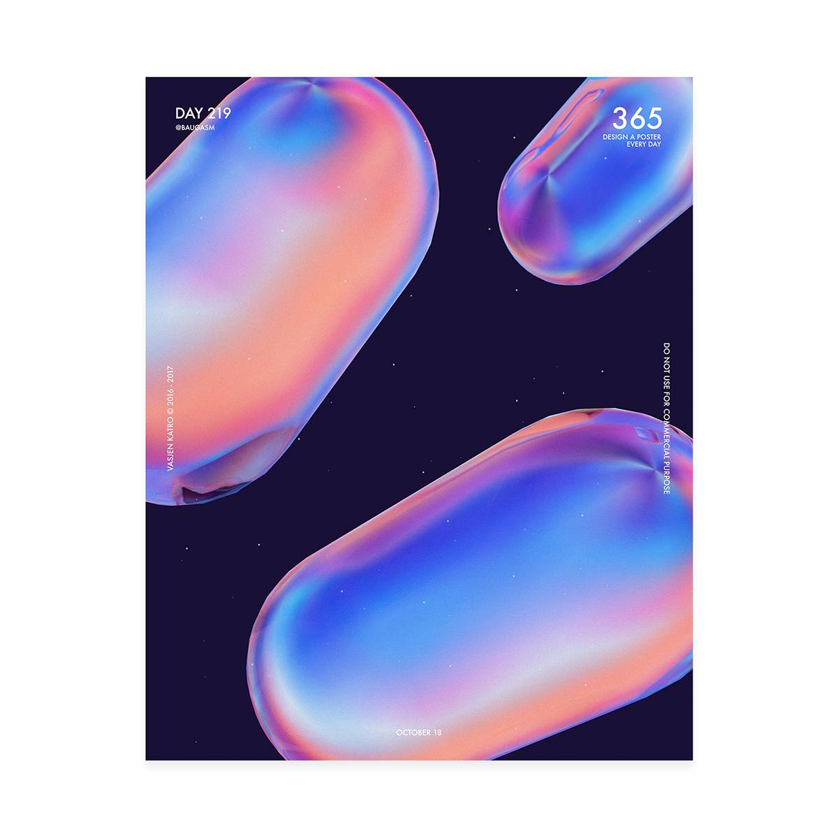 从Vasjen Katro作品中我们可以看到,他大量的使用不同的图形和二维和三维元件的有机形状以及醒目的颜色组合和梯度,这种设计方式能够创造出很好的视觉冲击,感觉非常棒!