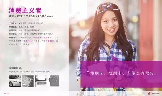 最后,我们需要将这些persona的信息制作成一个形象的人物画像,把这些关键信息紧凑而有序的呈现在一个版面上,以获取最佳的视觉传达的效果。