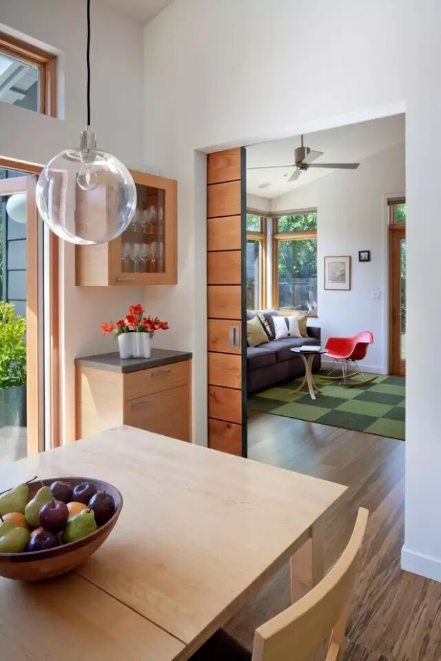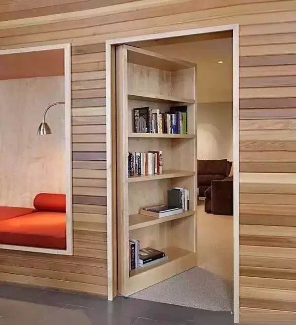 家居中的隐形门,往往会让人产生错觉,认为那根本不是门,而是一面墙或某一个装饰物或者是家具的一部分,这种隐形门既保证空间环境的协调,同时又隐藏了一个不想开放的私密空间。