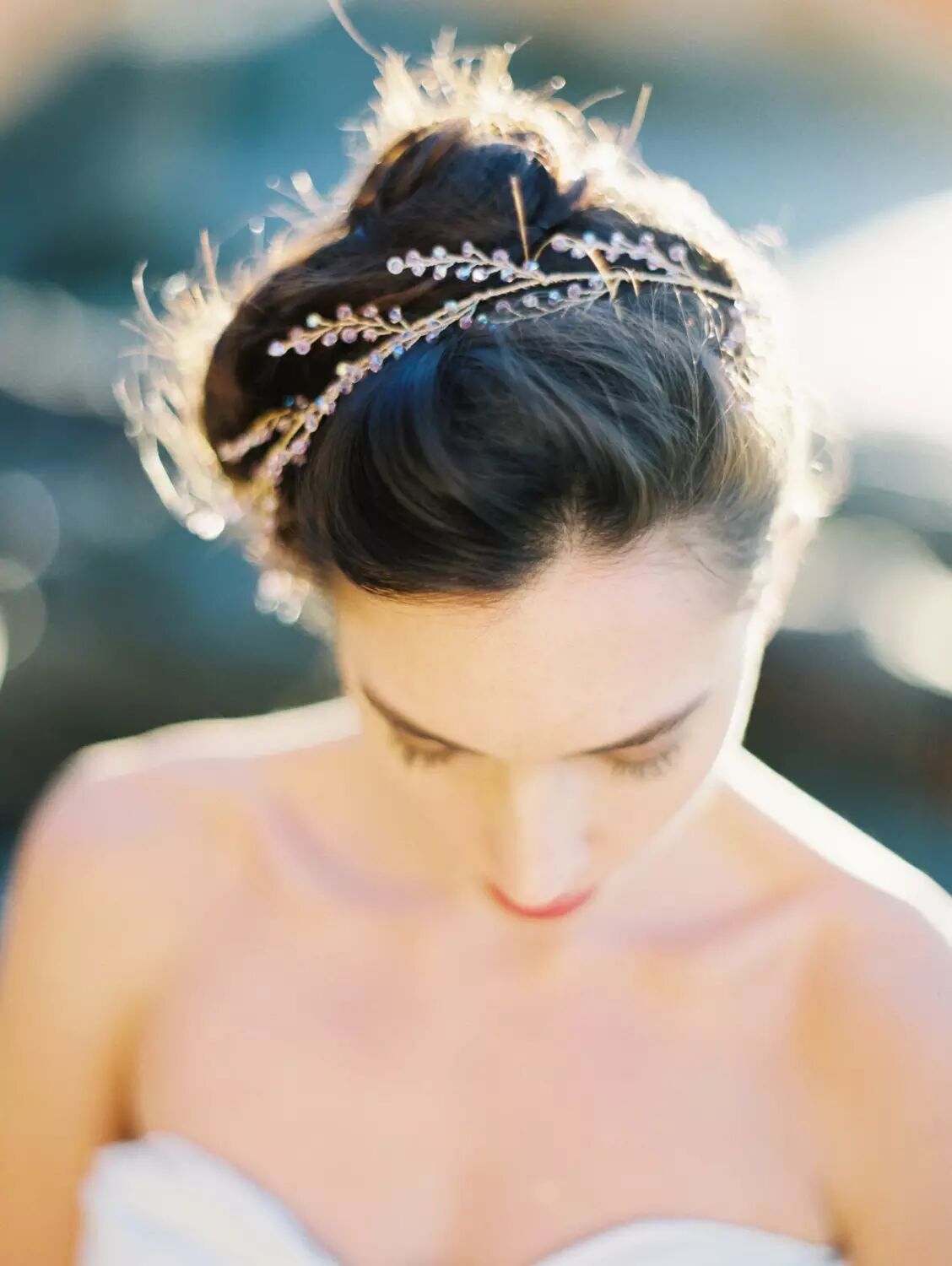 或是用更为用更为典雅的紫色花朵装饰头纱或高髻。
