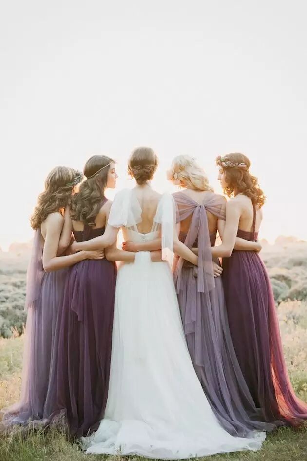 紫色具有极高的容错率,能够极大限度发挥效用,适用于任何地点、季节、风格或主题,紫色系伴娘服一定会让你的伴娘团们眼前一亮。