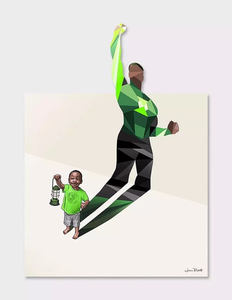 这组作品Jason Ratliff 作品用彩虹波普色块填充出人与物的倒影,使其变得鲜活、富有感染力,更加想出英雄在孩子们心中的地位。