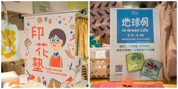 配合 3/11~4/30 的地球月主题,我们也推出了制作印花布卫生棉和麻绳编织的课程,也会邀请和我们理念相同的演讲者或艺术家来办讲座,地球月我们就邀请到绿色和平基金会的讲师来分享怎么做消费减量。地球月主题的理念来自于 3/12 植树节、4/22 世界地球日,希望温柔地提醒人们关注环保、生态议题。