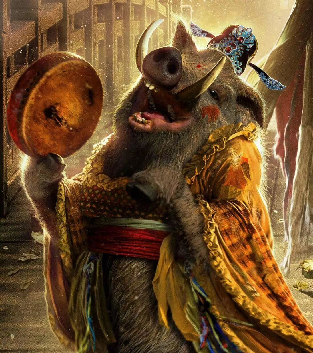 大K:接到这个方案难点很多, 首先是猴子 、猪、 唐僧、 场景素材 。唐僧提供了身体的素材和头部的素材 ,还算好处理。 下来是猪 提供了渲染素材 。但是由于渲染的问题毛发节点太少 ,sss太差 ,所以基本需要重新替换和添加毛发 ,添加衣物, 渲染的光也比较平 。