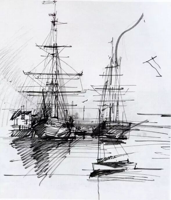船的速写,主要注意的是形体结构和比例,用笔干净简单