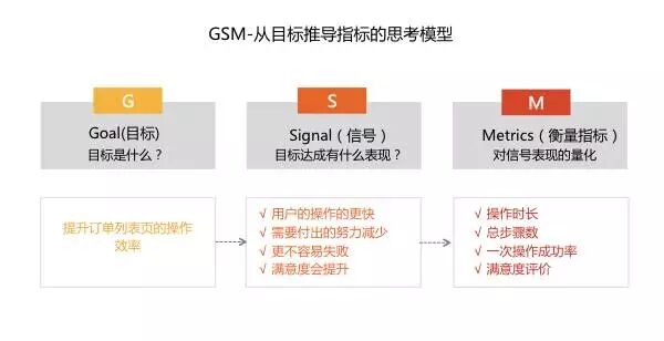 当确定了比较宏观的目标后,还需要找到能量化、细化目标的指标,这个推导的思路可以借鉴Google的GSM模型
