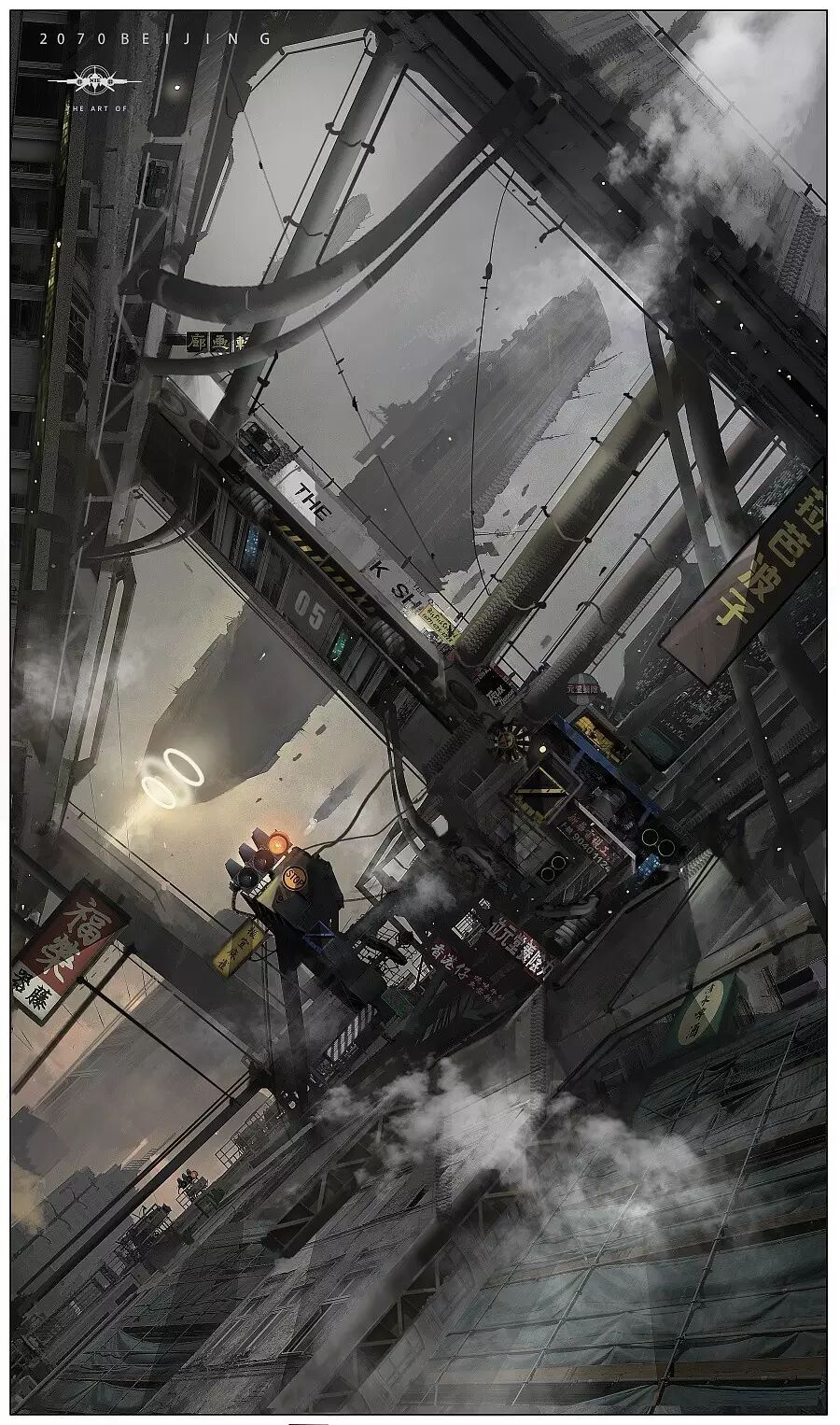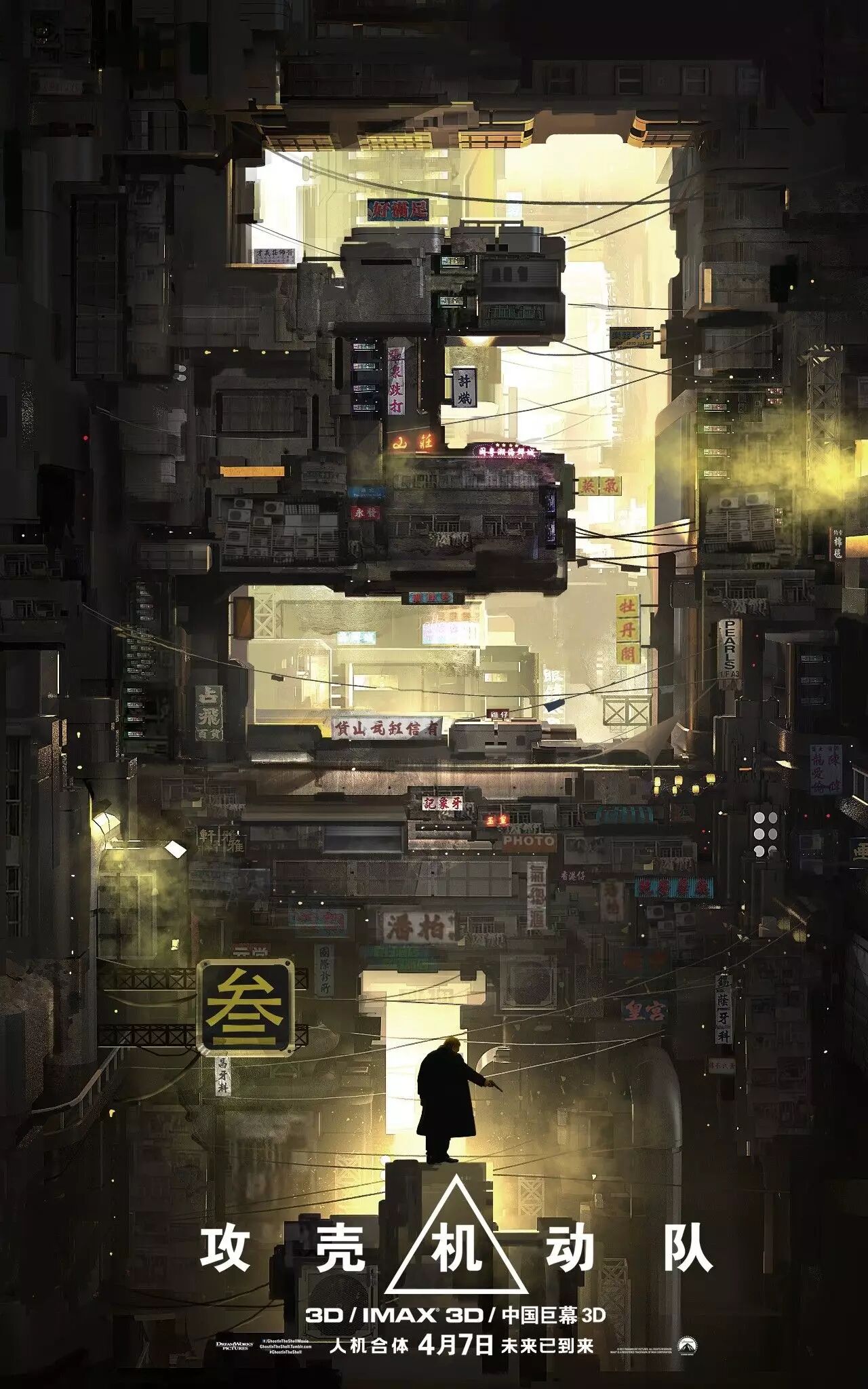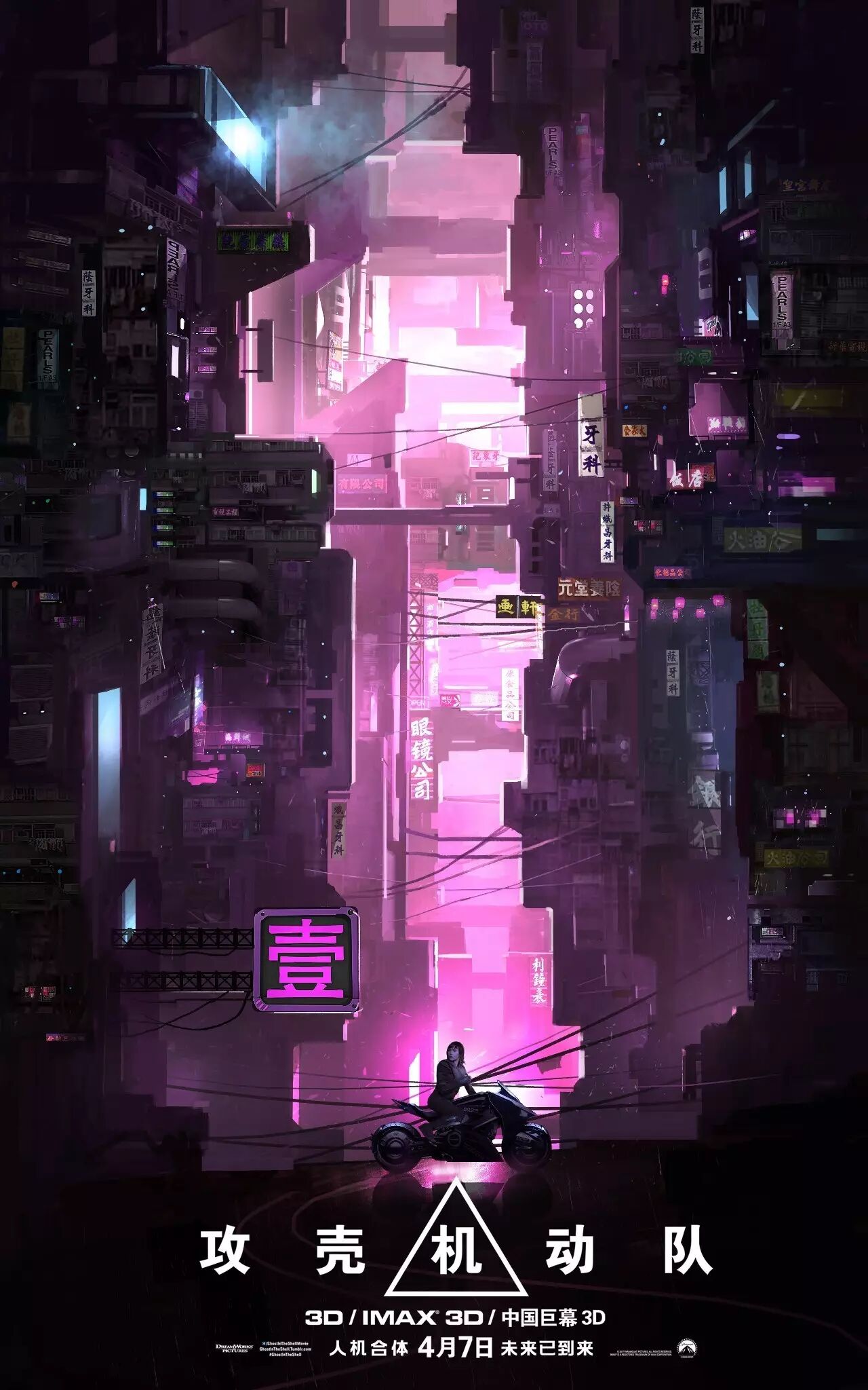 电影《攻壳机动队》中文场景及时海报就出自他手。看下这视觉效果,非常震撼。