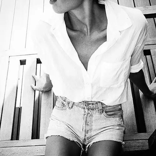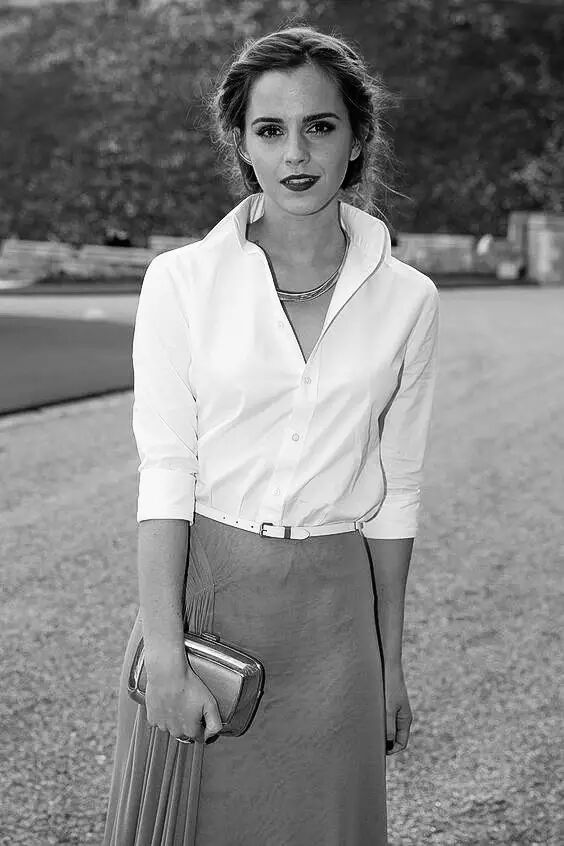 白衬衫只需解开最上面的两颗扣子,打造深 V 区域,可以使脸看起来更瘦,视觉上脖子变长。在炎热的夏天,即有透气感,还风情十足。