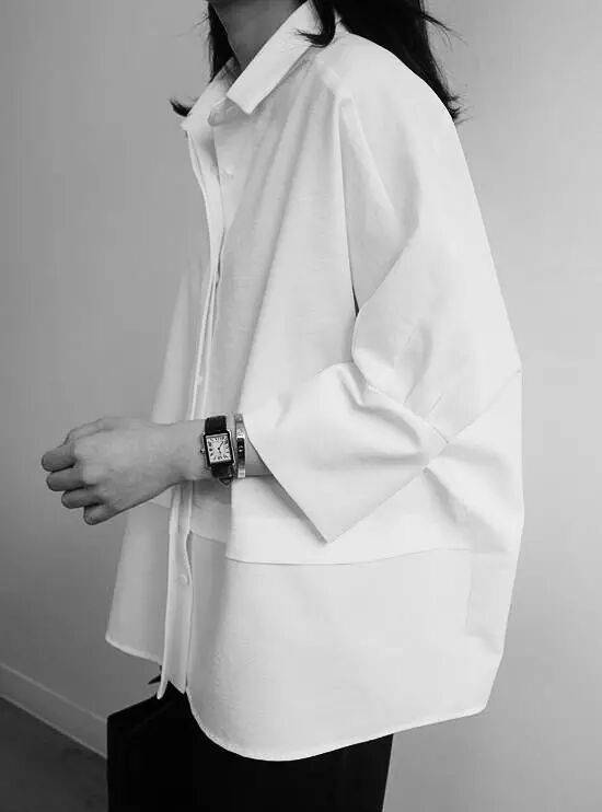 对于基础款的白衬衫,要打破刻板的印象,一般会习惯将袖子卷起来。使造型更加利落清爽,时髦指数上升。