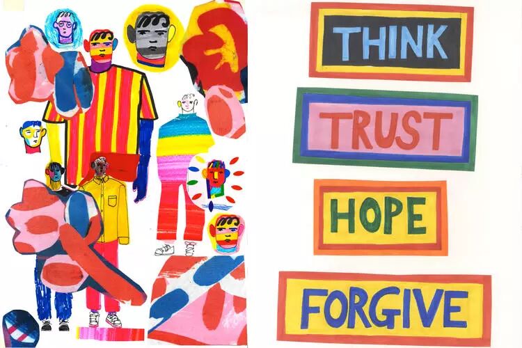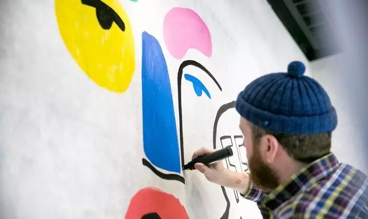 打开 John Booth 的 Instagram,你会看到一个色彩艳丽的世界,但这些饱和度极高的颜色搭配在一起却不会觉得媚俗。John Booth 最喜欢画抽象的人脸,在纸上、布料上、陶瓷上、包包上……