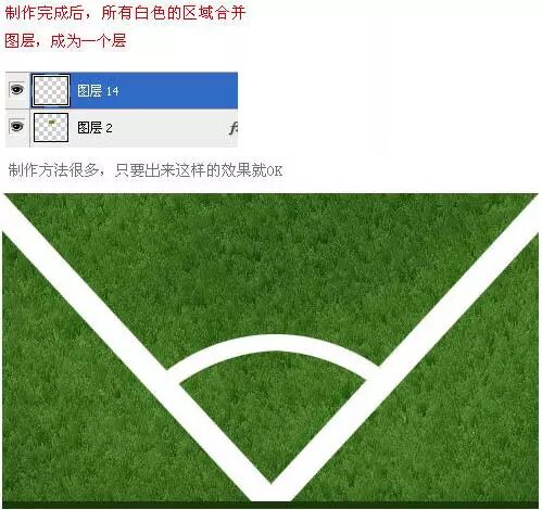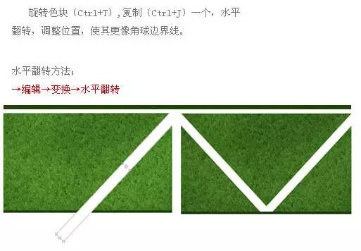 11、按Ctrl + T 旋转色块,复制一个水平翻转调整位置,使其更像角球边界线。