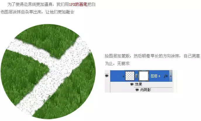 16、为了使边界线更加逼真,我们用1像素的画笔把白色图层涂抹些杂草出来。