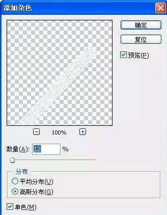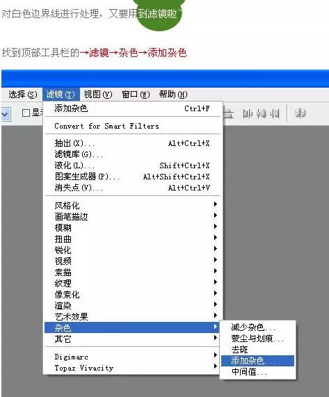 14、对白色边界线进行处理,选择菜单:滤镜 > 杂色 > 添加杂色,参数设置如下图。