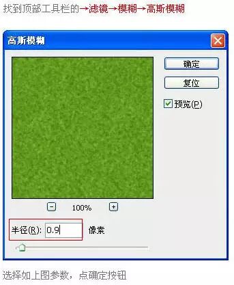 5、选择菜单:滤镜 > 模糊 > 高斯模糊,数值如下图。
