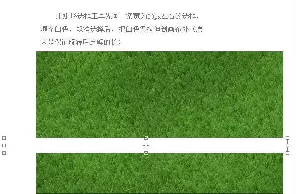 10、用矩形选框工具画一条宽为30PX左右的选框,填充白色,取消选择后吧白色条拉伸到画布外。
