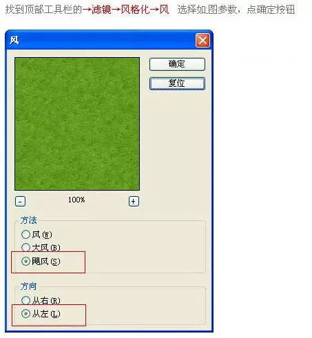6、选择菜单:滤镜 > 风格化 > 风,参数设置如下图。