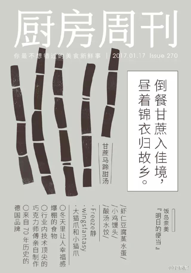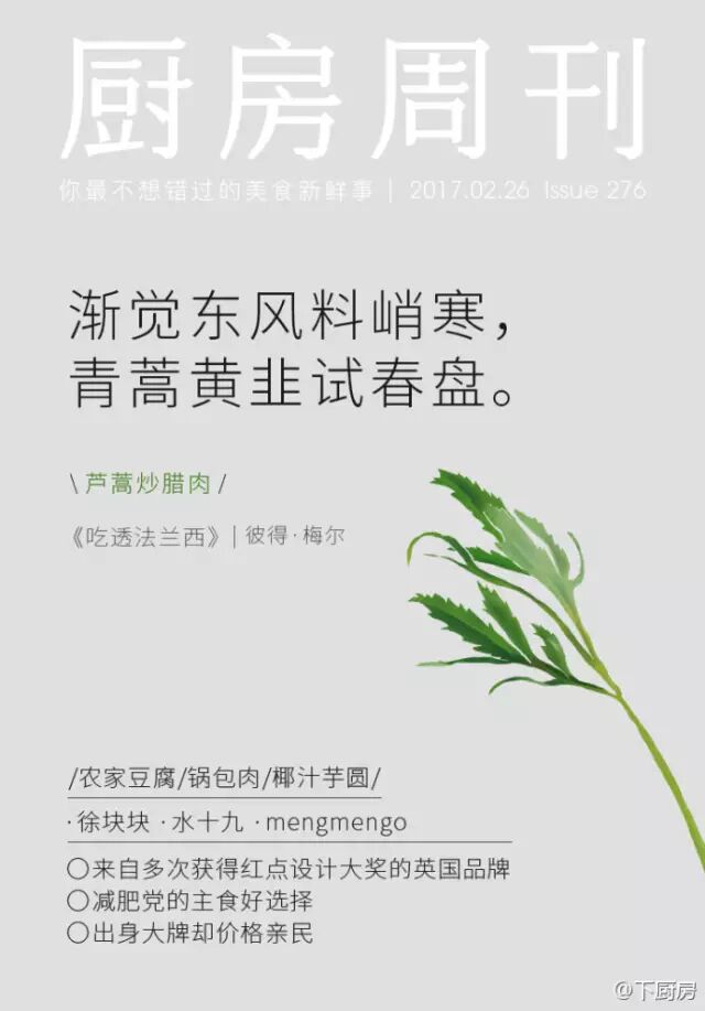 今天,文案君分享下厨房在其官方微博公布的299期《厨房周刊》文案: