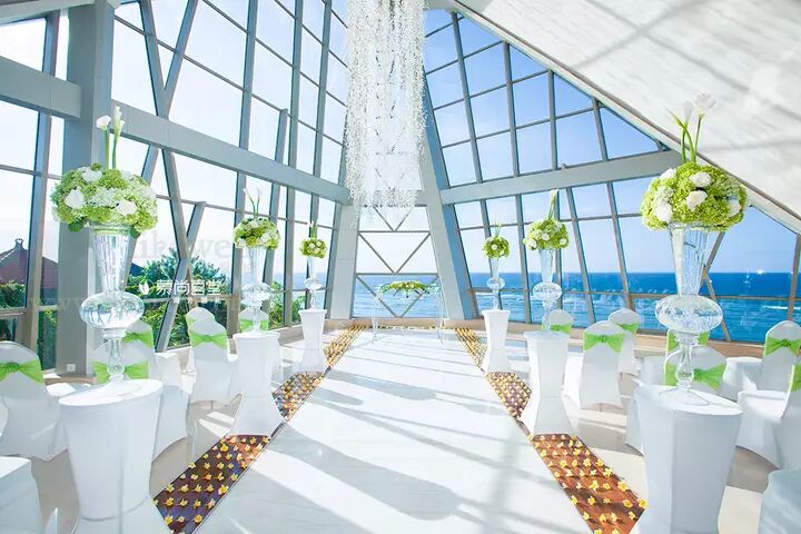【巴厘岛珍珠教堂】坐落在巴厘岛南部浪漫的Samabe别墅度假区里,建在印度洋悬崖之上。教堂建筑在浪漫的水平面上,全透明的水晶教堂可以一览无遗广阔的印度洋海景,必定让新人在满满的幸福中沉醉。