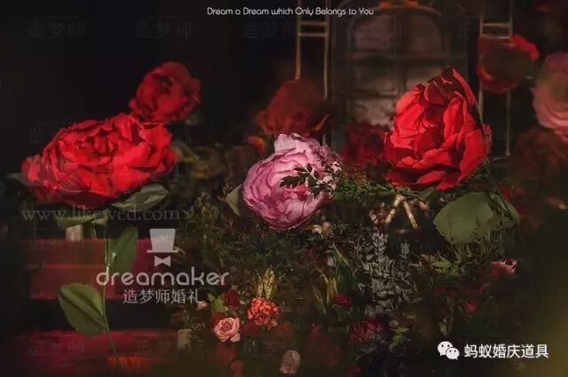 多彩的丛林纸花描绘出缤纷的童话浪漫景象,配合灯光的效果呈现出梦境般的感觉。