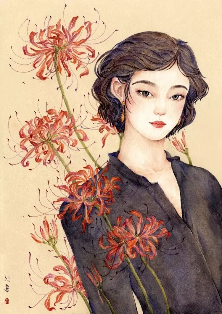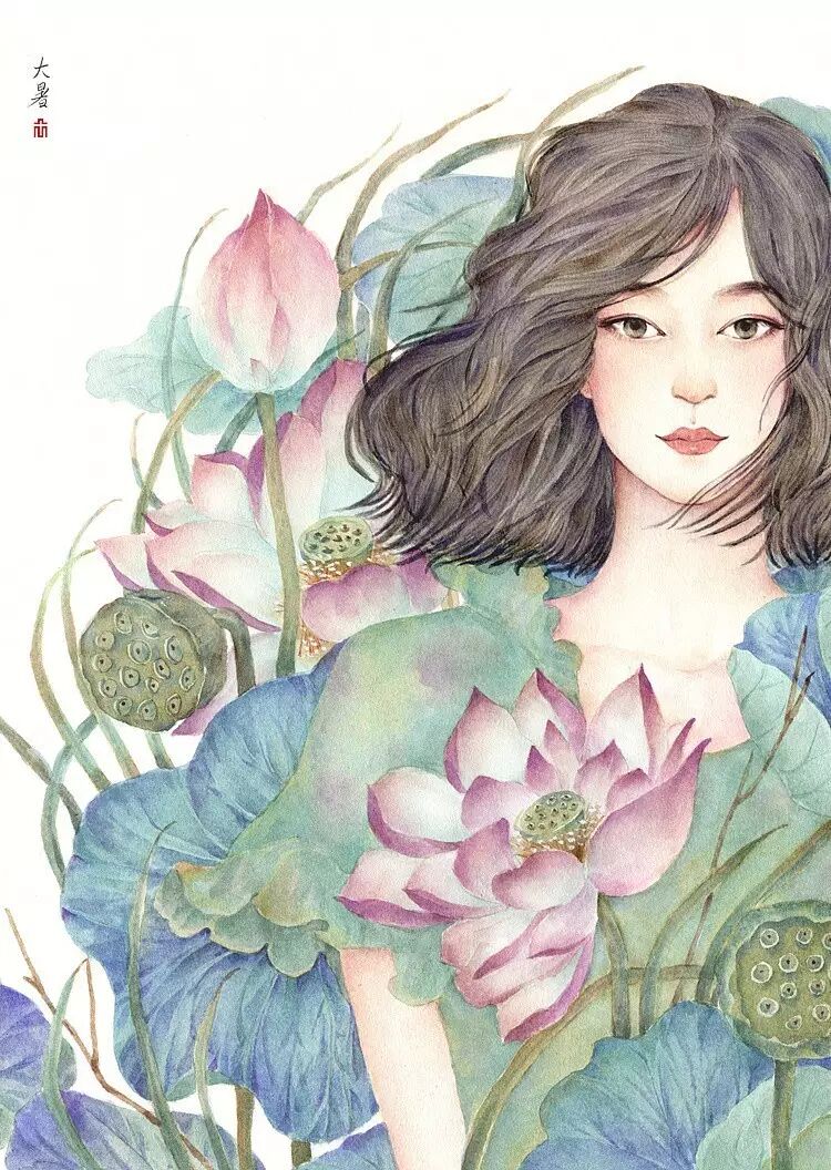 这个系列是和西安的万众国际合作的以节气为主的美人図,画当季的植物,配女孩。擅长的画风,合作很愉快。