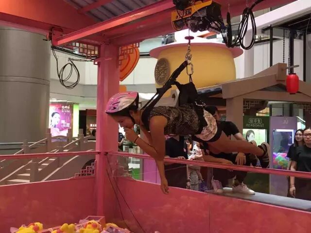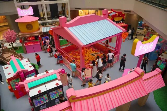 除了线上的宣传活动,天猫在上海也做了宣传活动,以“七夕情人节”为主题,运用粉色调的建筑物,搭配“巨型真人抓娃娃机”等互动活动,使活动现场超级火爆!