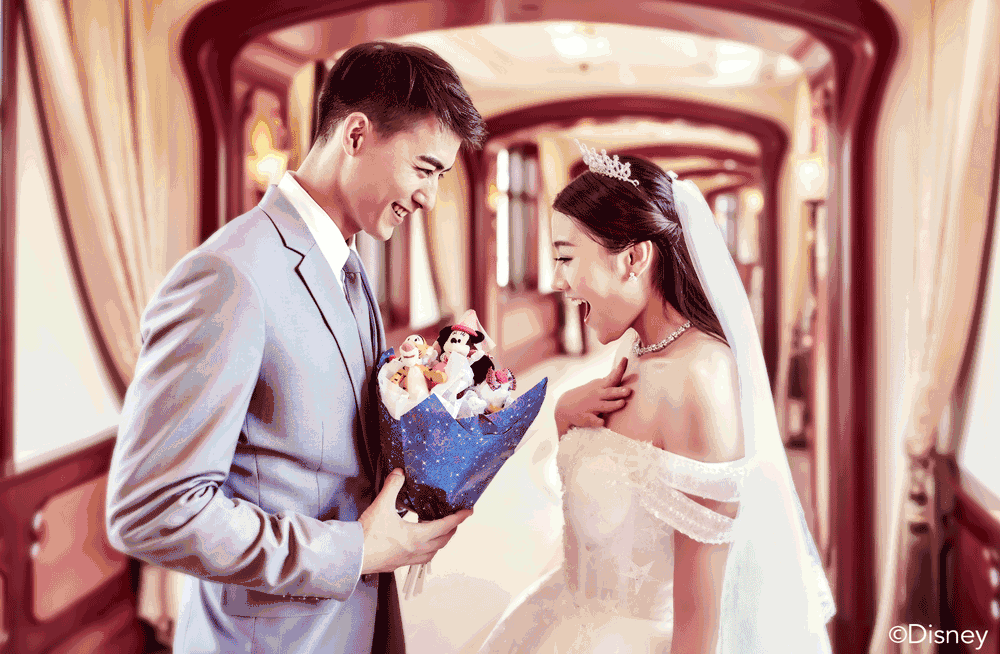 打造独一无二的梦幻婚礼影像,只在迪士尼童话婚礼。