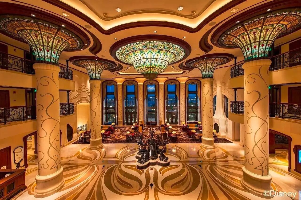 酒店建筑深受新艺术主义风格的影响,造型充满活力,线条动感十足,同时融合迪士尼的神奇和想象力,从整体到细节,酒店内处处都呈现着迪士尼的奇思妙想。