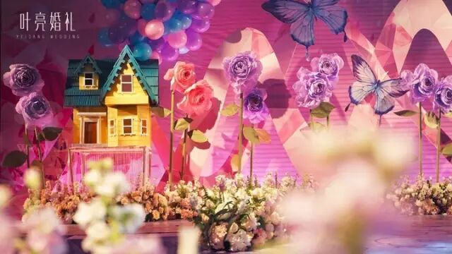五彩斑斓的气球!超级可爱的飞屋!翩跹的蝴蝶正在追逐云朵。电影里的场景搬到了婚礼上,一切梦想都照进了现实~仿佛带着最爱的人,漫步在彩虹之上。一切尽在这场飞屋环游记主题婚礼当中!