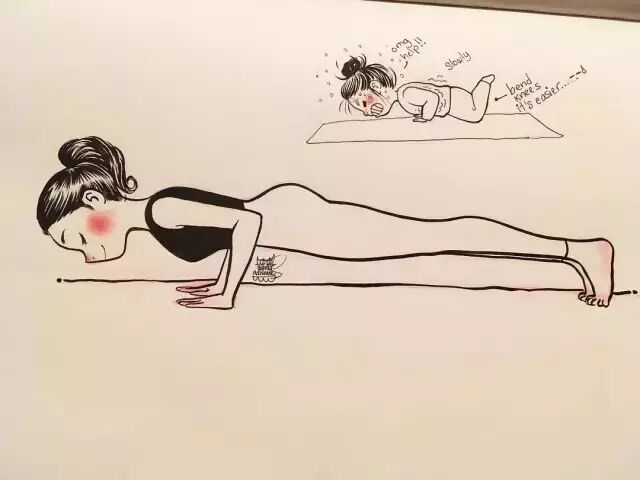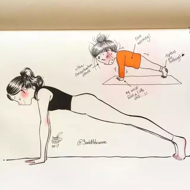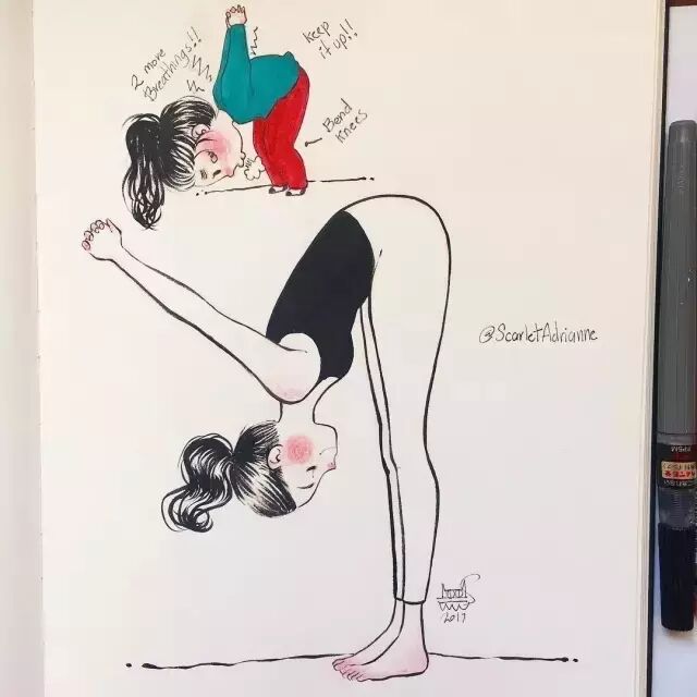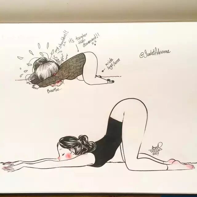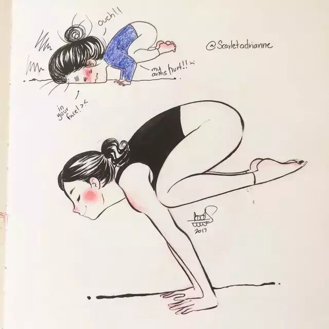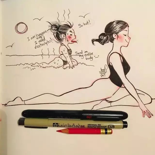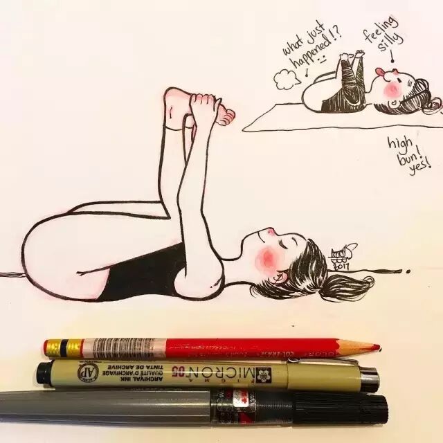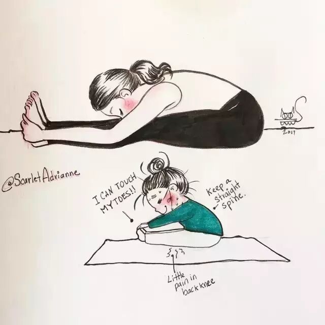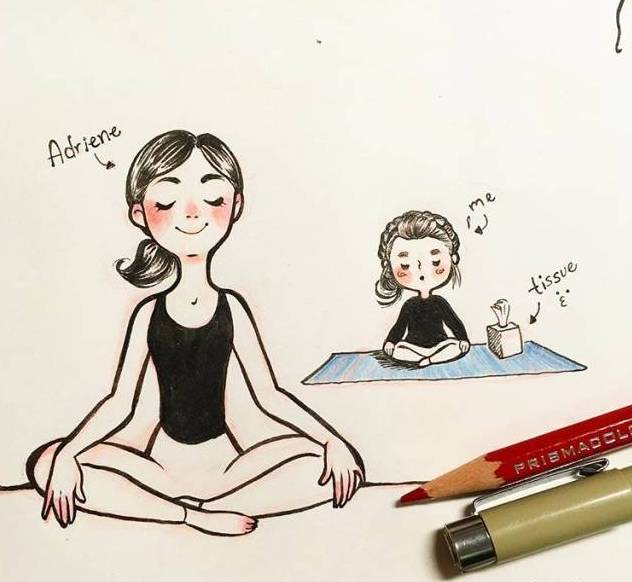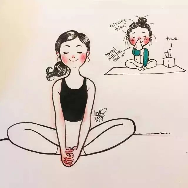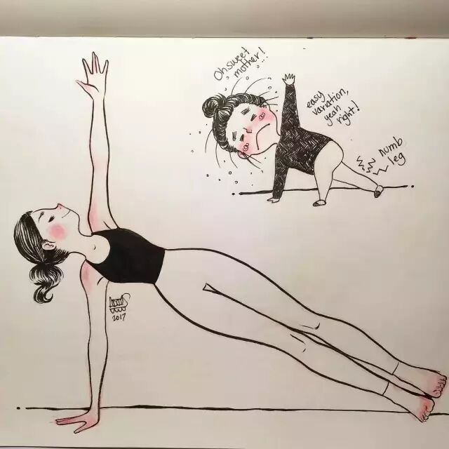 不过不用担心,即便是你不会做,但是你可以画啊。墨西哥的插画家 Adriana Rodríguez León 就用萌萌的图画出了初学瑜伽时的状态。是不是画的就是你?