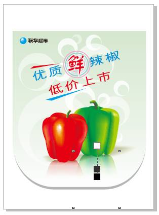 步骤十三、打开素材 执行“文件>打开”,找到“CorelDRAW X7网状填充打造写实辣椒.cdr”文件,单击“打开”按钮打开文件在CorelDRAW。将辣椒拷贝至POP吊旗的适当位置,然后添加投影效果,如图所示。关于写实辣椒的制作教程请查阅下篇文章:CorelDRAW X7网状填充打造写实辣椒。