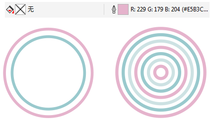 步骤九、制作圆环 选择工具箱中的“椭圆形工具”,按住Ctrl键绘制正圆,填充为“无”,只显示描边效果,像这样按住Shift键等比例复制多个,形成一圈一圈的圆环状,然后Ctrl+G群组。