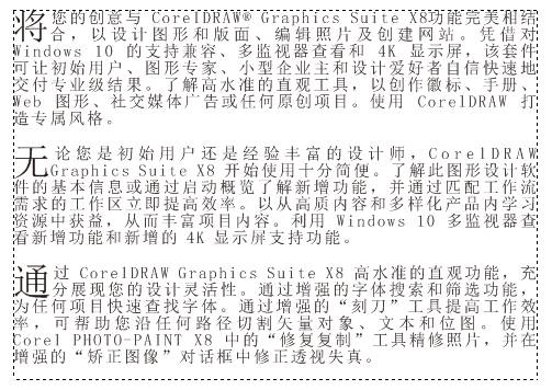 - 使用F8“文本工具”,在CDR绘图区域拖动鼠标实现段落文本框,在框内单击添加段落文字,或者也可以从已有文字中复制文本到文本框。如图所示。