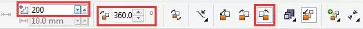 步骤三 在属性栏中,调整其步数为200步,设置调和旋转角度为360度,选择逆时针调和,设置好这些属性之后,呈现效果如图所示: