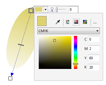 步骤四、填充颜色 打开“渐变填充”对话框,对其应用射线渐变填充,并设置颜色从土黄色(C:0,M:20,Y:60,K:20)到白色。单击“确定”按钮,为椭圆形应用渐变填充效果,并去除轮廓线。