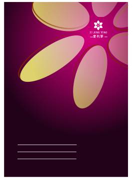 一本书能让人第一眼看到的就是封面,所以对封面的设计尤为重要。在设计酒店书籍封面时,采用了与酒店标志相似的花瓣图形作为背景图像,绘制出一朵大大的花瓣图形,并应用渐变填充,再添加透明效果,让图形占据了大半个封面,给人一种视觉冲击力,但同时又不会使封面显示过于复杂。而在封底仅用了一些文字说明,让大部分封底都为空白,只呈现出渐变颜色效果。